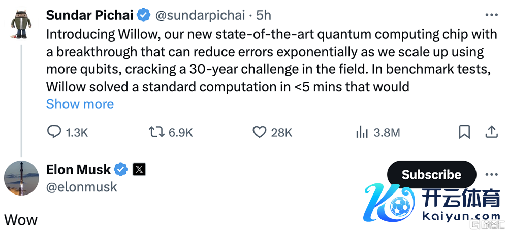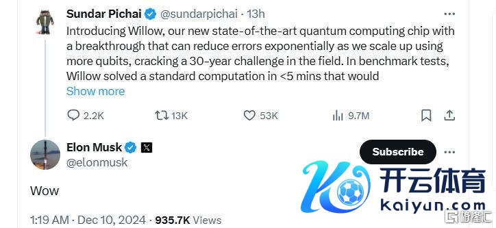 在谷歌CEO皮查伊在酬酢平台X上官宣Willow后,立马引来了马斯克“Wow”声。