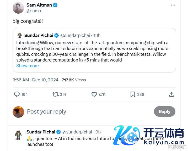 就在团结天,OpenAI也发布了Sora视频大模子新品。是以皮查伊也还礼暗意:“多元天地将来的量子+AI行将到来,也恭喜o1发布!”